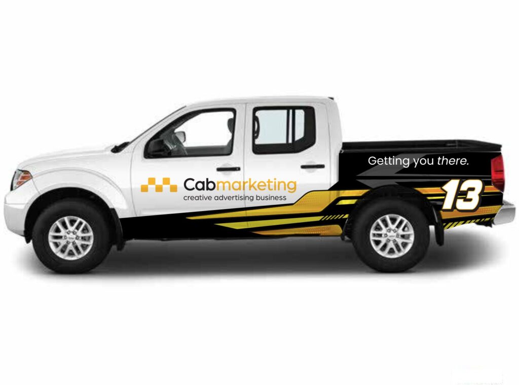 - High Impact: By covering the most visible parts of the truck, the design draws attention without the need to wrap every inch.