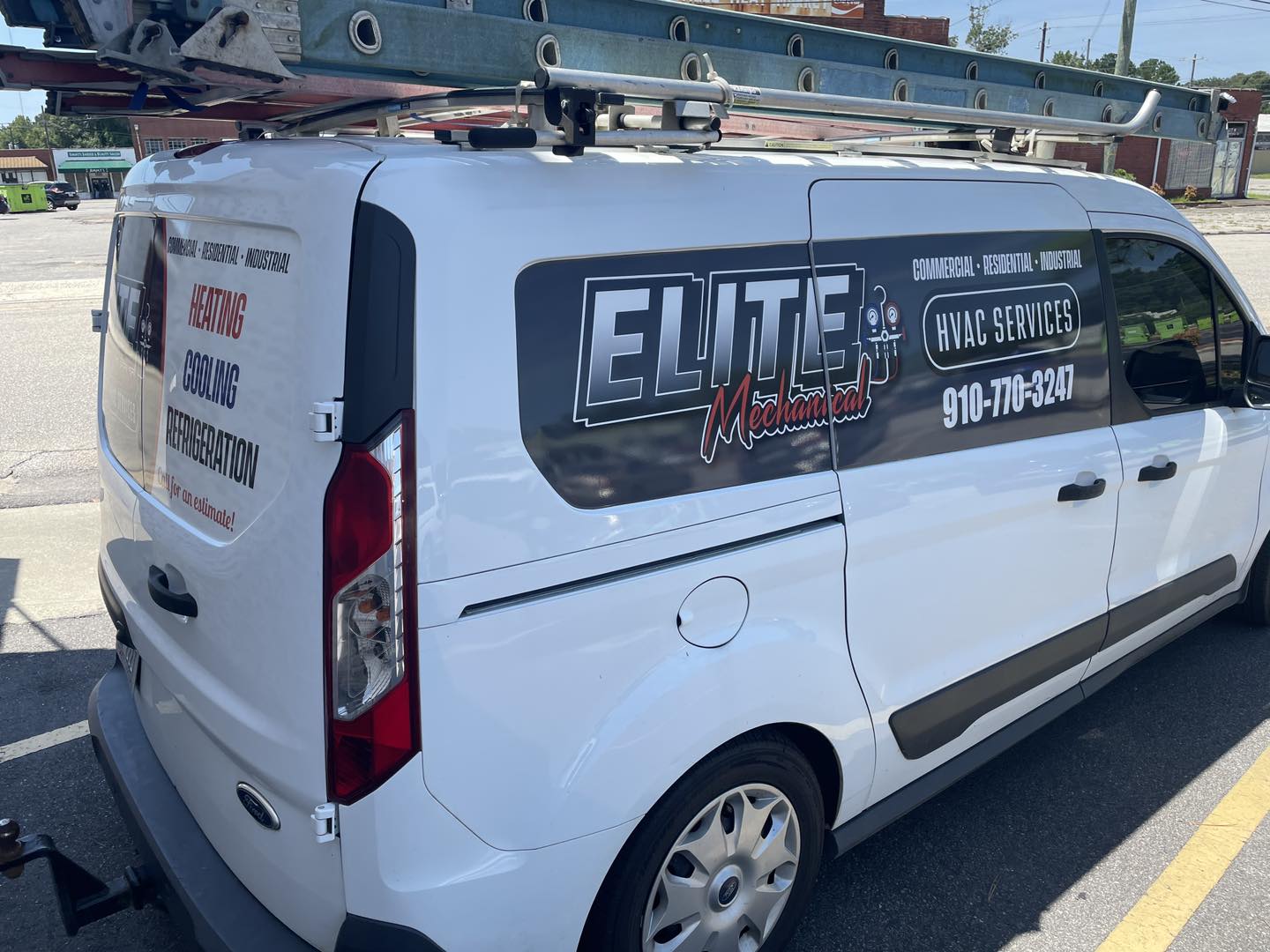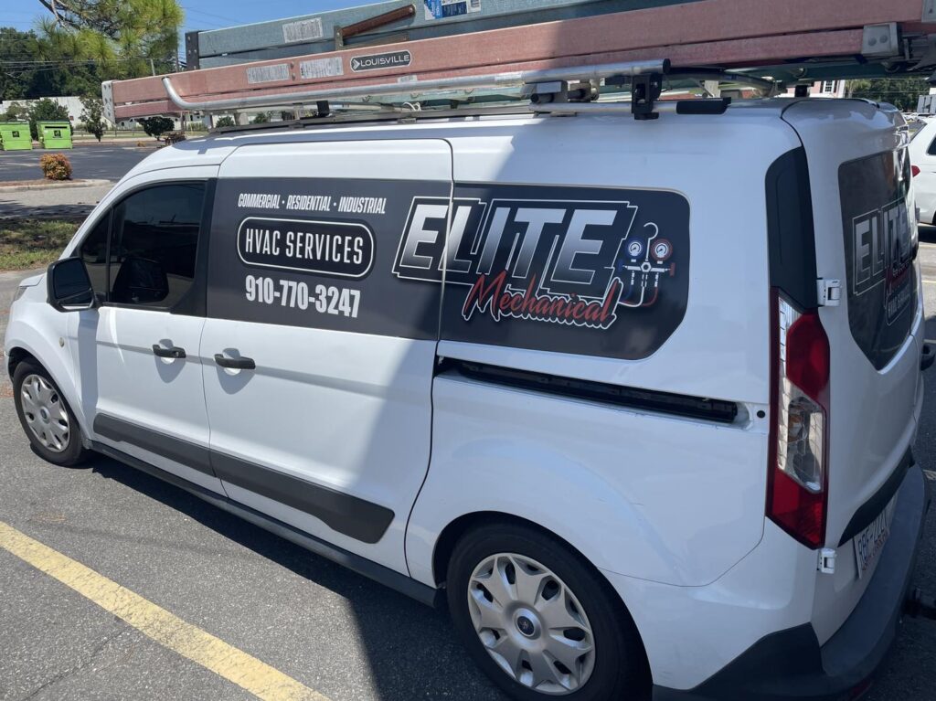 At Mr. Postman Print Shop, we know that effective branding doesn’t have to break the bank. Our recent project with Elite Mechanical in Whiteville, NC, is a perfect example of how a smart, budget-conscious solution can deliver maximum impact. We installed a custom window recess wrap on their Ford Transit Connect, giving the vehicle a polished, professional look while keeping costs in check.