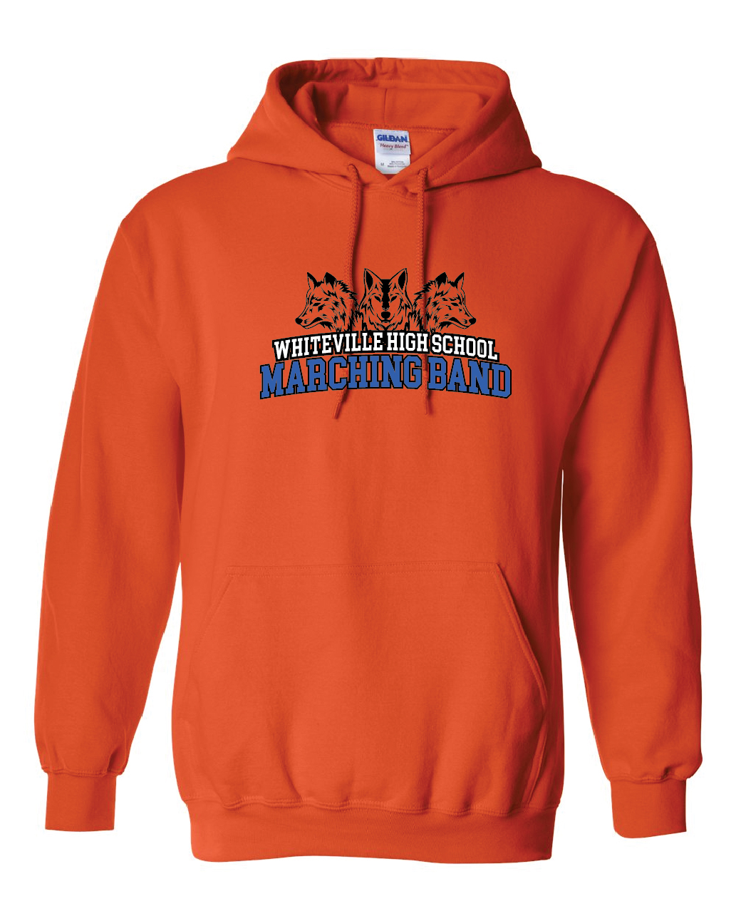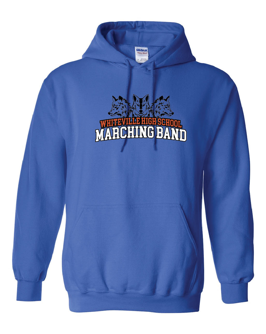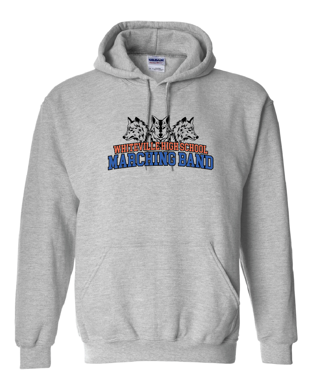 Stay warm and show your Wolfpack pride with The Classic Marching Band Hoodie — featuring the iconic three wolf head logo and Whiteville High School Marching Band printed front and center.