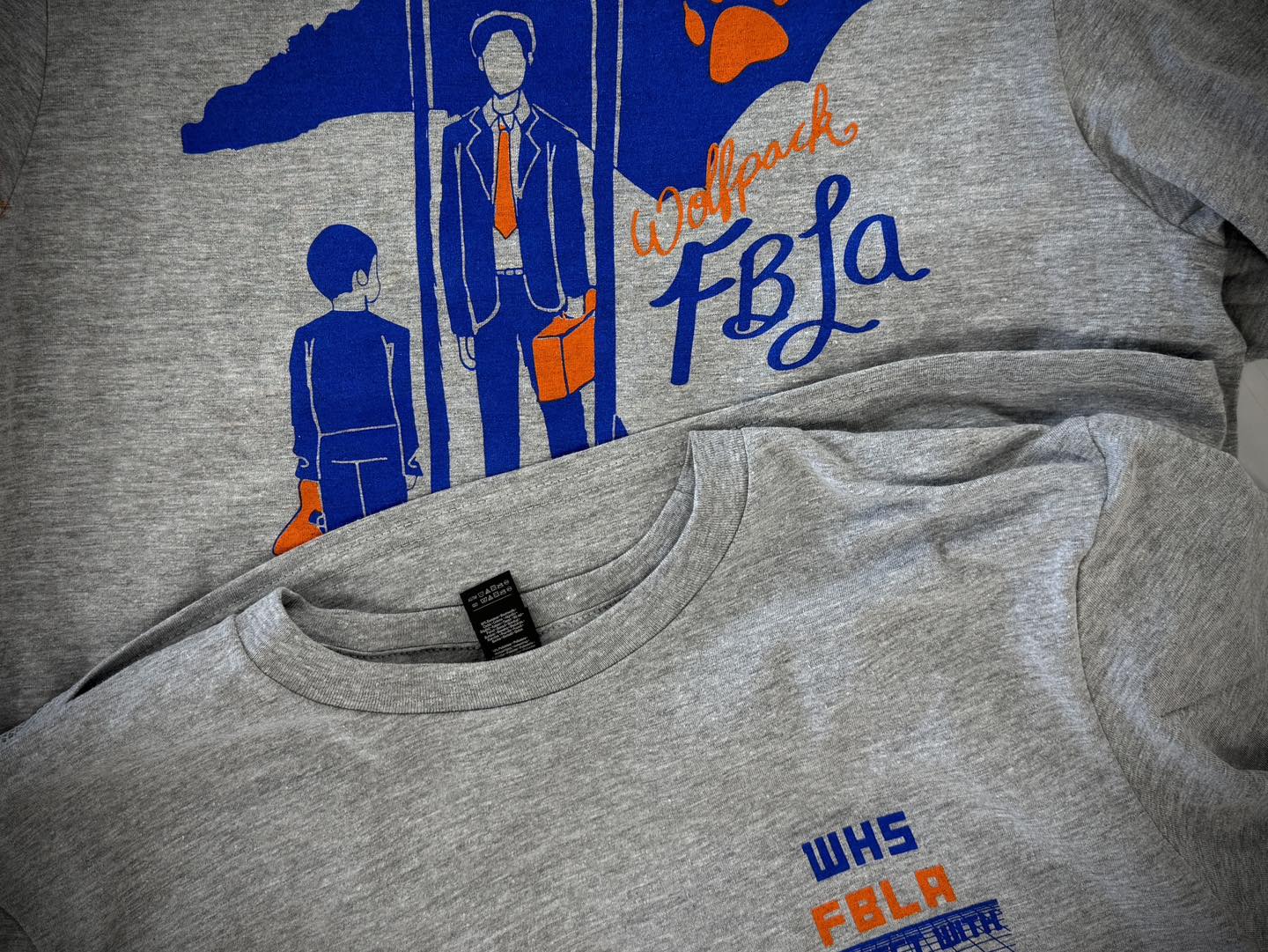 The t-shirts, printed on soft and stylish heather gray fabric, featured a meaningful and visually striking two-color design that utilized the school’s bold colors: royal blue and orange. The design included two print areas:
